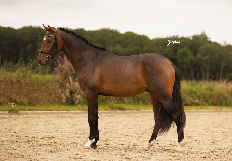 2,5 jarige hengst van Extreme US uit de merrie Beaubelle (Krack C x Contango x Ulft). Beaubelle is een Elite, IBOP dressuur (>+80 punten) PROK en Preferente merrie. Zij heeft meerdere succesvolle nakomelingen gegeven, die o.a. op Lichte Tour niveau lopen. Uit de moeder van Beaubelle komen meerdere Grand Prix dressuur paarden, Lichte Tour paarden en Z-dressuurpaarden. Deze hengst komt dus uit een veelbelovende en sterke moederlijn, die bekend staat om hun goede karakter en gezondheid.